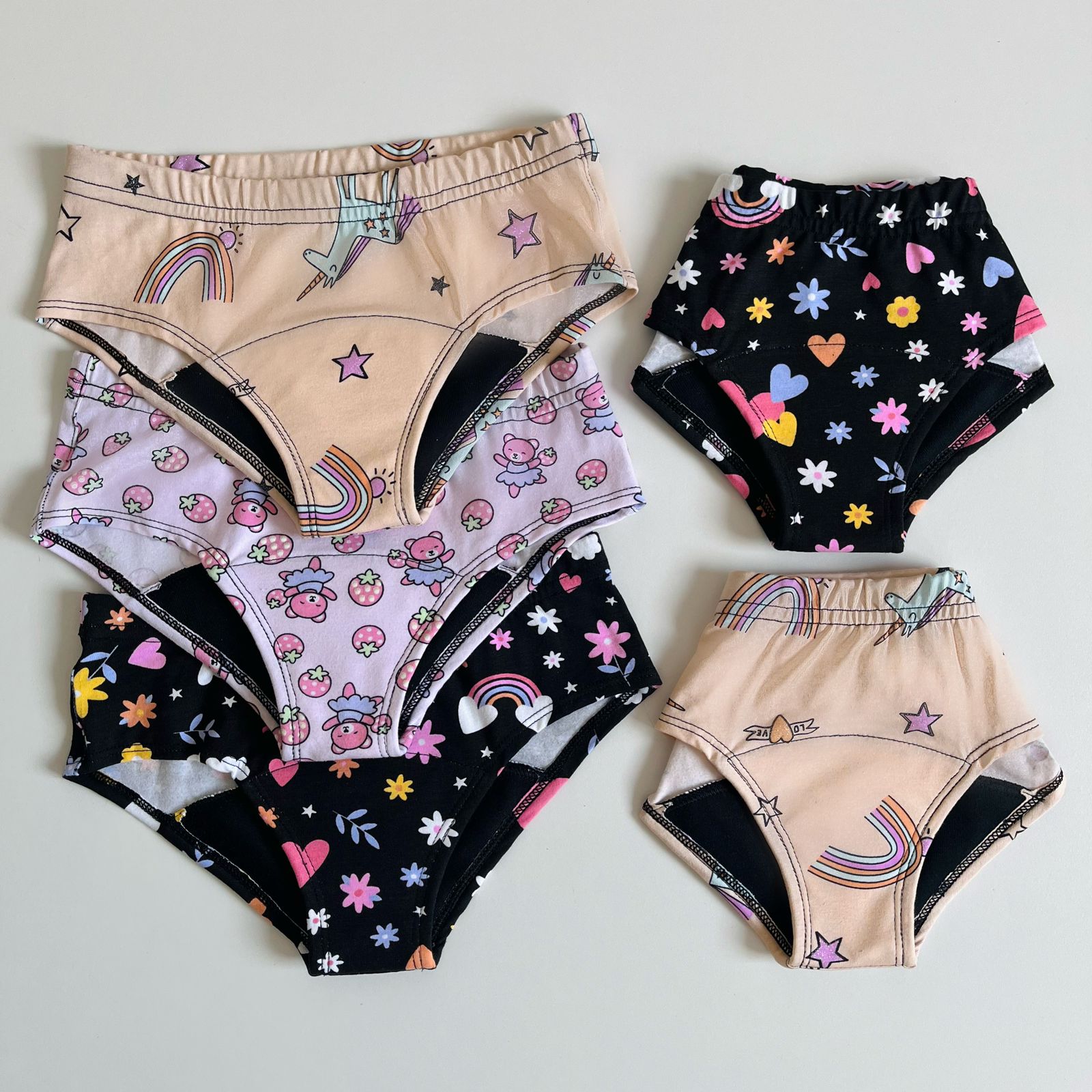 Panties absorbentes reutilizables diseñados especialmente para acompañar a las niñas en sus primeros ciclos menstruales con total comodidad y confianza.